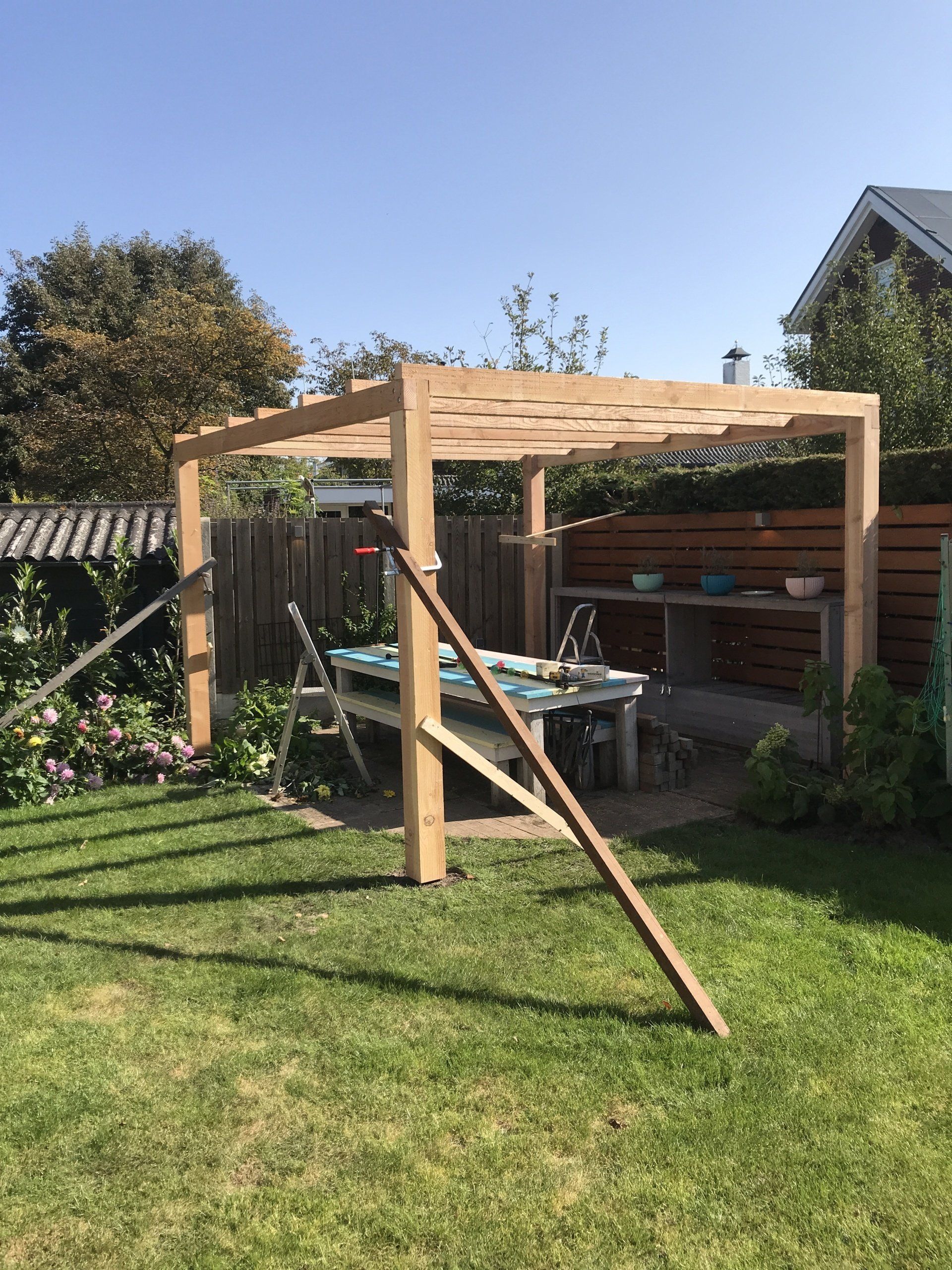 Een pergola in Lisse in opdracht van gebr. Prins bouw een aannemer uit Lisse